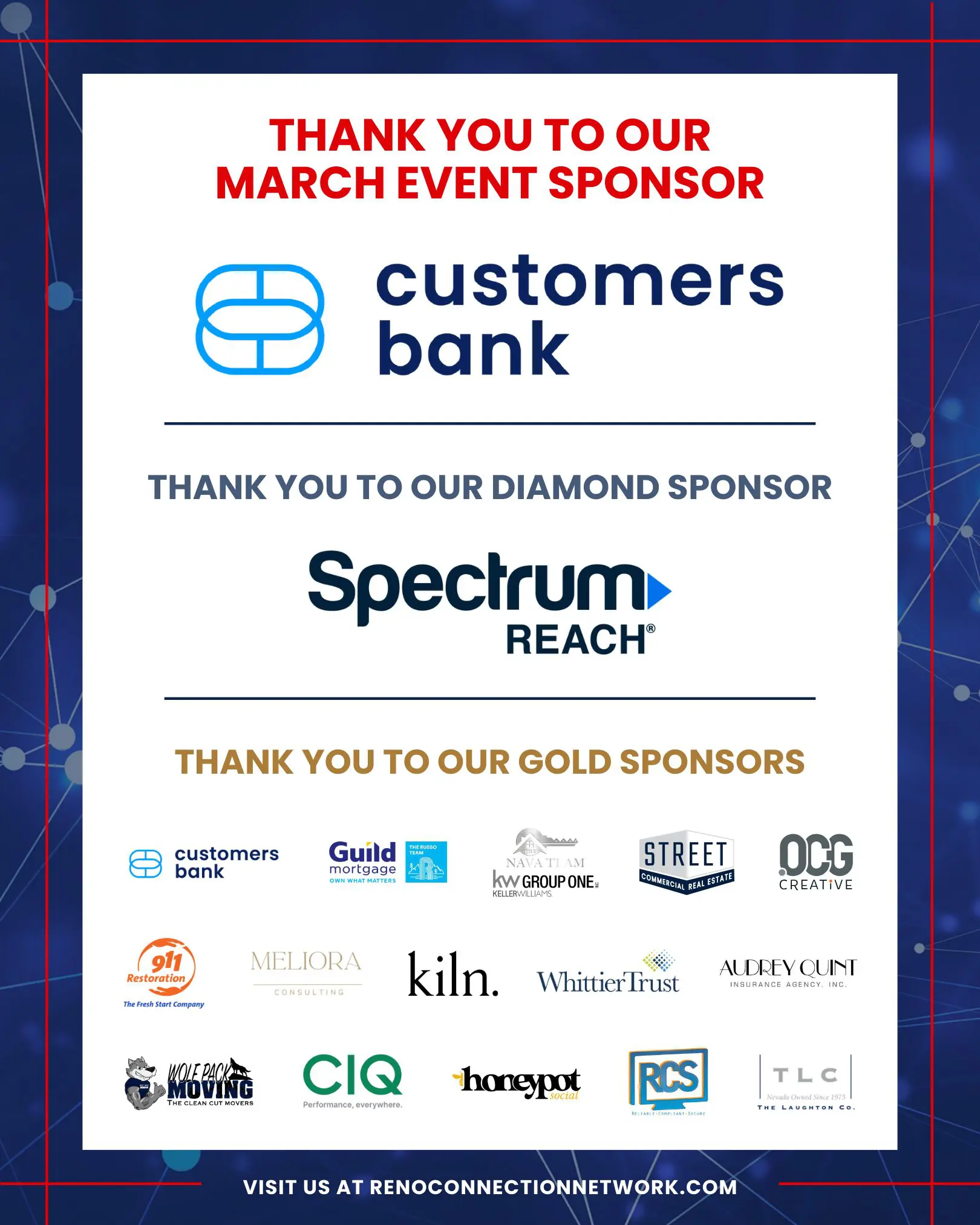 Let’s kick off the new year with fresh connections and great conversations! Join us this March 18th at Customers Bank, 6900 S. McCarran Blvd, Suite 2020, where professionals come together to connect and collaborate. Special thanks to our Host and Sponsor, Customers Bank, for helping make this event possible. Whether you’re meeting new contacts or catching up with familiar faces, this is your chance to connect with Reno’s thriving business community.